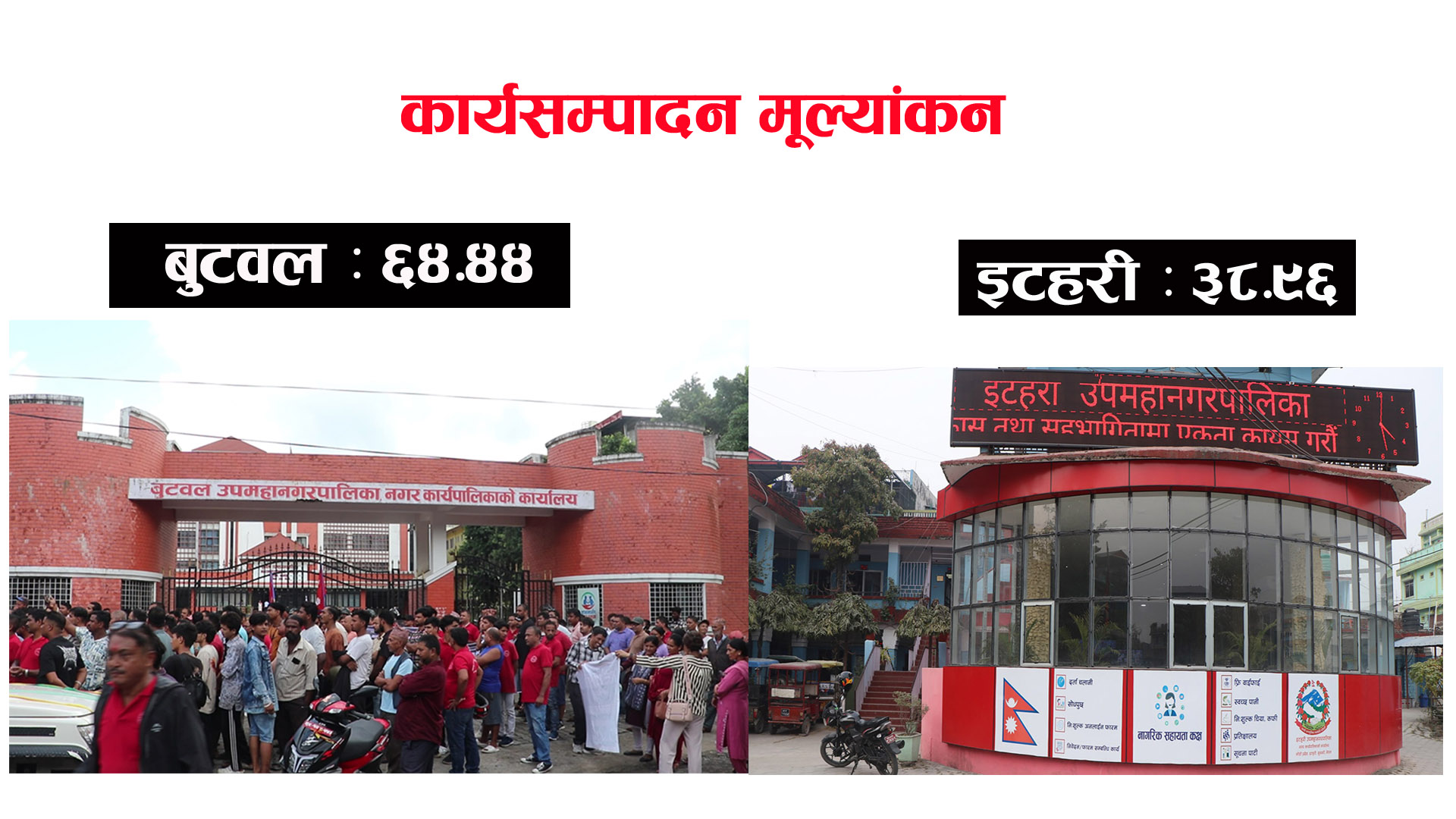 इटहरी । देशभरिका ११ उपमहानगरपालिकामध्ये कार्यसम्पादन मूल्यांकनमा बुटवल उपमहागरपालिका सबैभन्दा अगाडि देखिएको छ ।राष्ट्रिय प्राकृतिक स्रोत तथा वित्त आयोगले बिहीबार कार्यसम्पादन मूल्यांकन नतिजा सार्वजनिक गरेको छ ।