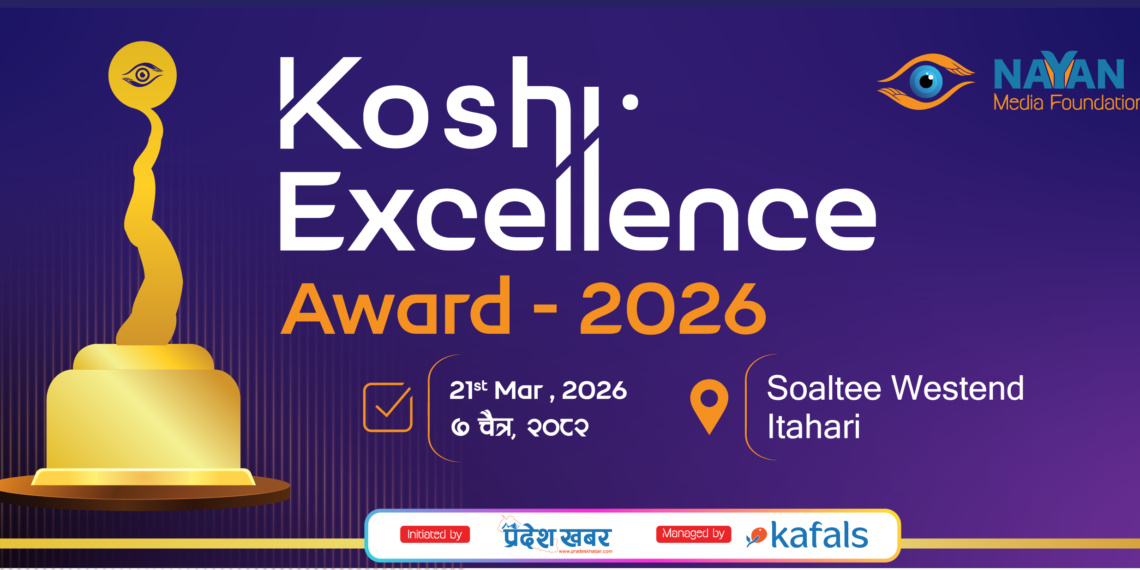 इटहरी । कोशी प्रदेशको पर्यटन, व्यापार तथा सामाजिक–सांस्कृतिक पहिचान प्रवर्द्धन गर्ने उद्देश्यले नयन मिडिया फाउन्डेसनद्वारा आयोजना हुँदै आएको ‘कोशी एक्सिलेन्स अवार्ड २०२६’ को मिति निर्वाचन आचारसंहिताका कारण परिवर्तन गरिएको छ । पूर्वनिर्धारित कार्यतालिकाअनुसार उक्त अवार्ड कार्यक्रम फागुन ७ गते इटहरीस्थित सोल्टी वेस्टेन्ड होटलमा आयोजना गर्ने तय गरिएको थियो ।