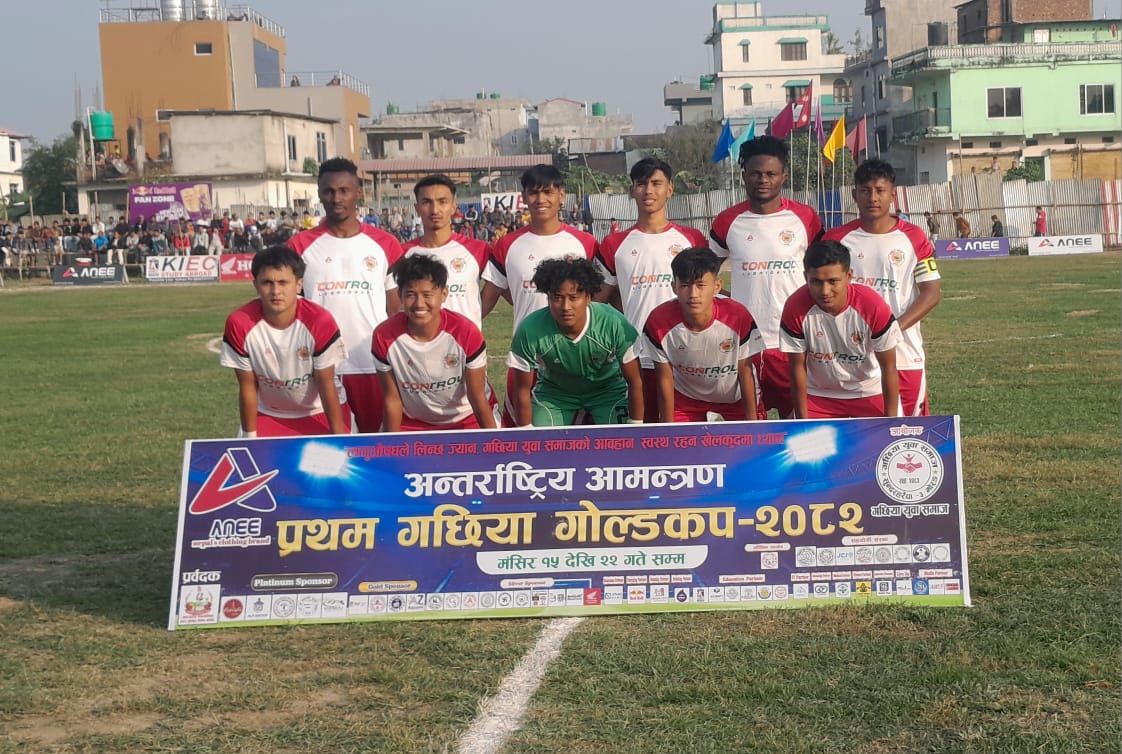इटहरी । सुन्दरहरैंचा गछिया युवा समाजद्वारा आयोजित एनि प्रथम गछिया गोल्डकप–२०८२को चौथो खेलमा राष्ट्रिय जागृती फुटबल क्लब इटहरीले दमक फुटबल क्लबलाई २–० ले पराजित गर्दै सेमिफाइनलमा प्रवेश गरेको छ। खेल सुरूभएकाे पहिलो हाफको १३औँ मिनेटमा प्रवेश बस्नेतले पहिलो गोल गरे भने दोस्रो हाफको ३९औँ मिनेटमा योगेन्द्र कार्कीले थप गोल गर्दै जीत सुनिश्चित गरे। दमकले खेलकाे अवधिभर पाएकाे अवसरलाइ सदुपयाेग गर्न नसक्दा सुन्यमै चित्त बुझाउनुपरेकाे थियाे । खेलमा ‘म्यान अफ द म्याच’ बनेका योगेन्द्र कार्कीलाई ५ हजार १ सय रुपैयाँ पुरस्कार प्रदान गरियाे ।